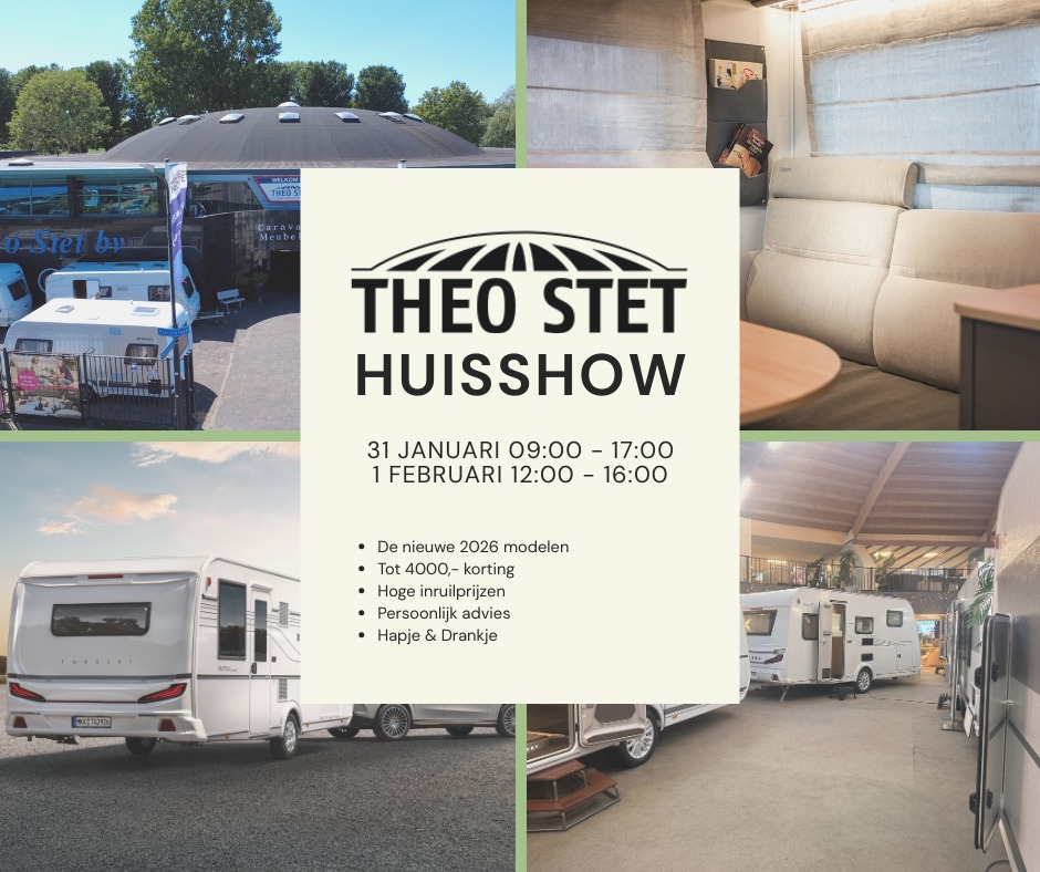 De start van een onbezorgde vakantie begint bij Theo Stet. Wij zijn een klantgerichte verkoop organisatie die al meer dan 55 jaar actief is en een begrip is in de verkoop en inkoop van caravans. Bij Theo Stet beschikken wij, naast onze nieuwe Tabbert en LMC collectie, altijd over een ruimaanbod van betrouwbare occasions in verschillende prijsklassen en diverse merken.