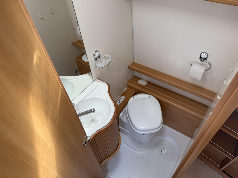 Gascomfort, Achteropstelling sanitair met cassettetoilet en wasruimte