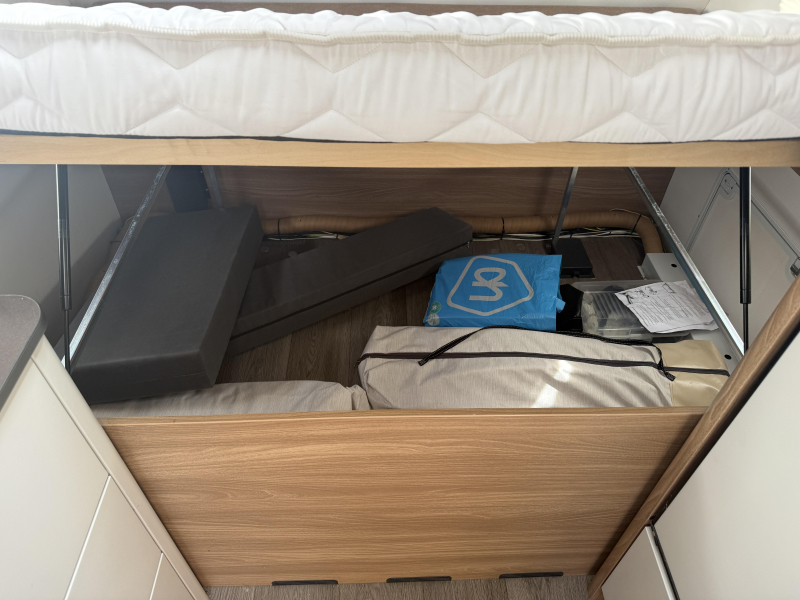 Slaapgedeelte: Ruim dwarsbed + treinzit om te bouwen