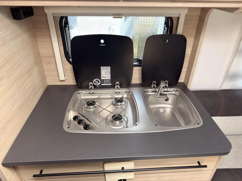 Deze caravan is uitgerust met een comfortabele indeling met een Frans bed en een ruime rondzit. Dankzij voorzieningen zoals circulatieverwarming, complete keuken, hoekopgesteld sanitair, hagelbestendig dak en een z.g.a.n. voortent is deze caravan geschikt voor zowel korte trips als langere vakanties.