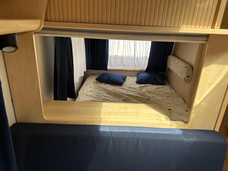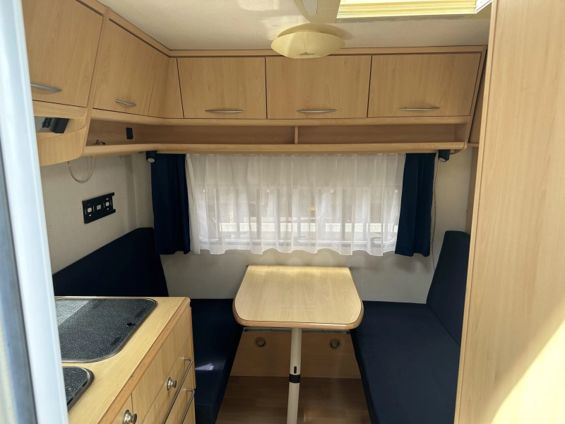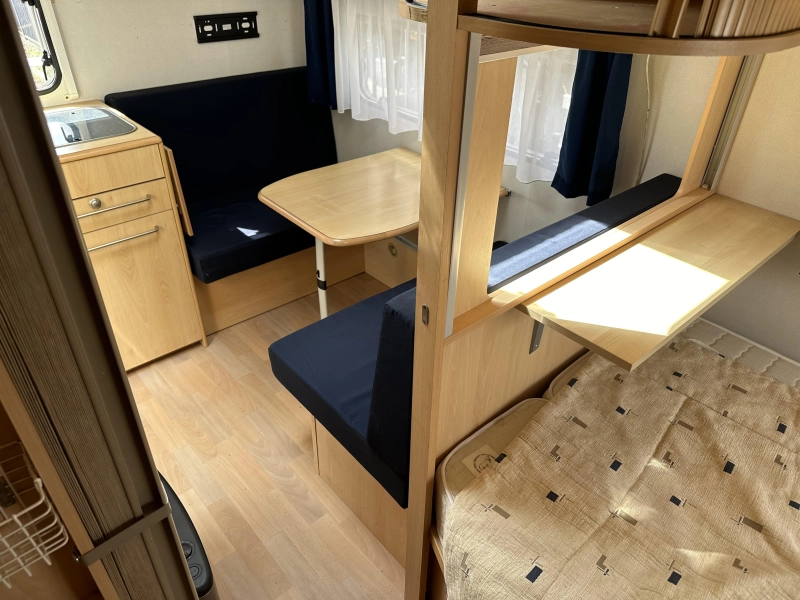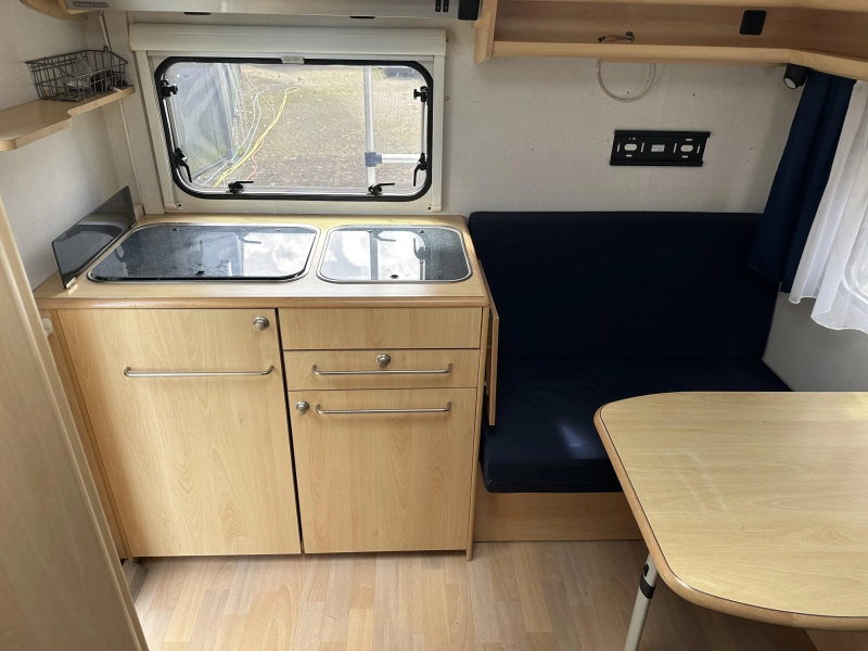 Deze degelijk gebouwde caravan biedt alle benodigde ruimte en comfort. Dankzij het ruime laadvermogen kunt u al uw vakantiespullen makkelijk meenemen. Het serviceluik zorgt voor gemakkelijke toegang tot uw spullen van buitenaf. De treinzit biedt een gezellige zithoek of extra slaapplaats. De ingebouwde keuken en badkamer (met cassettetoilet) maken deze caravan compleet. De stabilisatorkoppeling verbetert het weggedrag en dankzij de kachel blijft het ook tijdens kouder weer aangenaam.