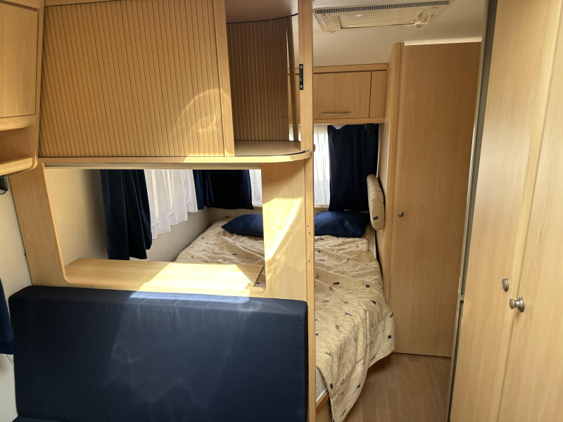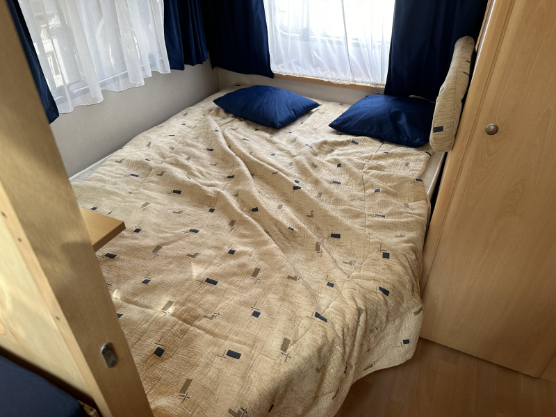 Deze degelijk gebouwde caravan biedt alle benodigde ruimte en comfort. Dankzij het ruime laadvermogen kunt u al uw vakantiespullen makkelijk meenemen. Het serviceluik zorgt voor gemakkelijke toegang tot uw spullen van buitenaf. De treinzit biedt een gezellige zithoek of extra slaapplaats. De ingebouwde keuken en badkamer (met cassettetoilet) maken deze caravan compleet. De stabilisatorkoppeling verbetert het weggedrag en dankzij de kachel blijft het ook tijdens kouder weer aangenaam.