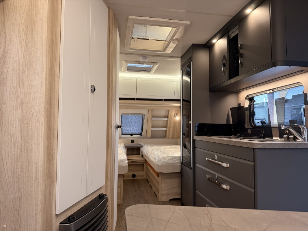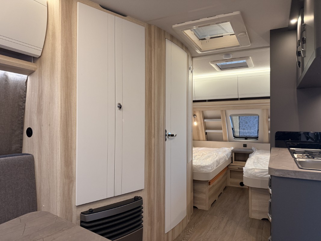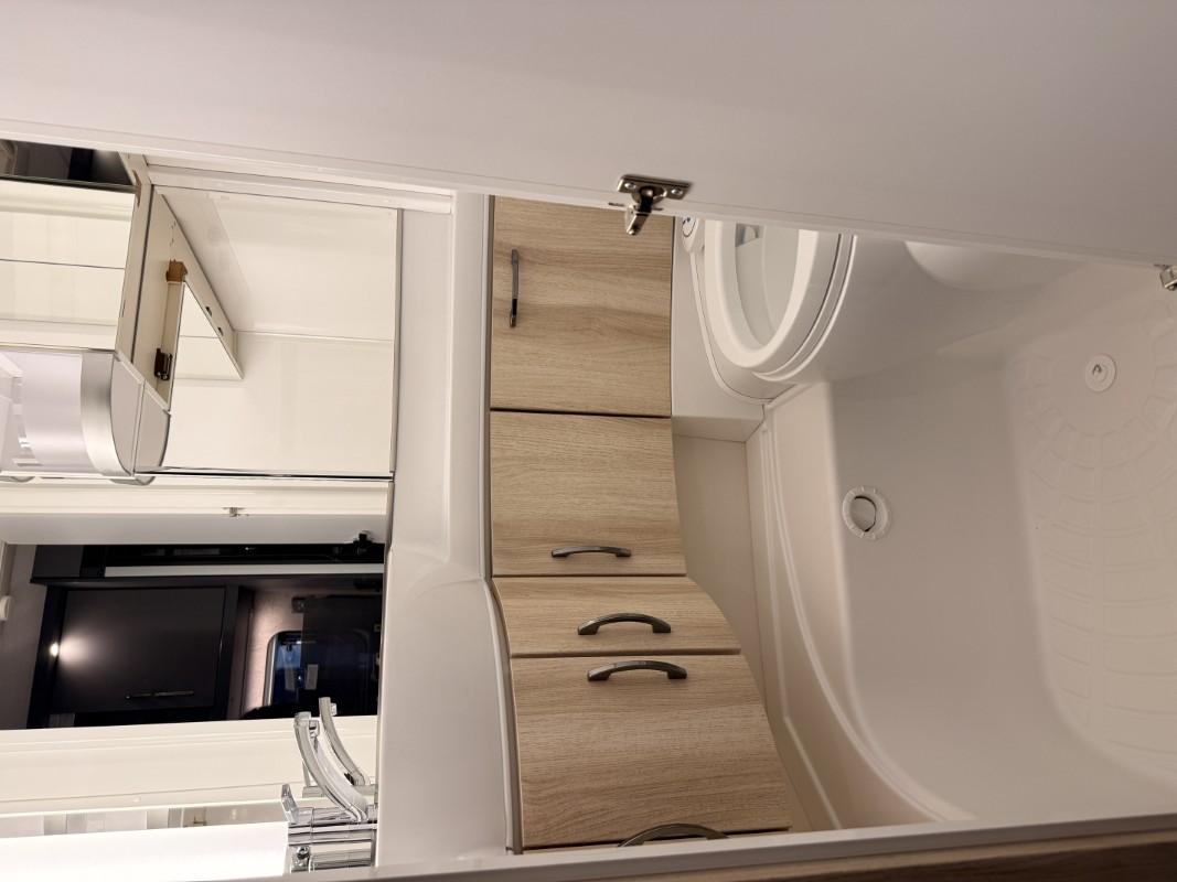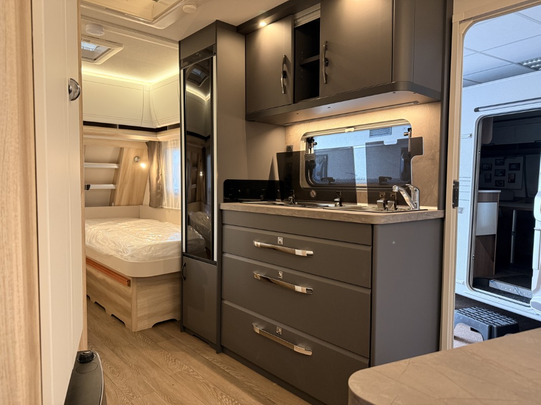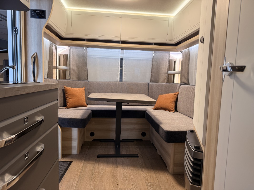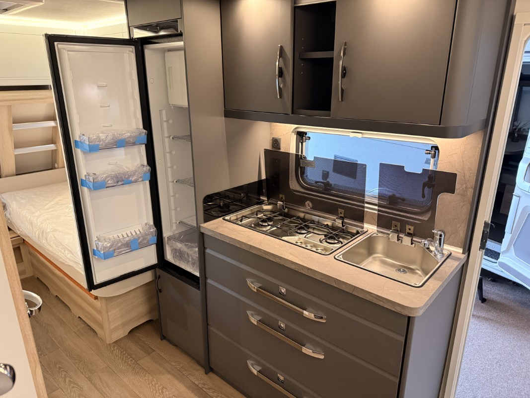 De riante rondzit is ideaal om gezellig aan te eten en te drinken, maar kan ook als extra slaapplaats dienen. Het keukenblok is centraal in de caravan geplaatst. De 5 liter boiler, die in de caravan is ingebouwd, voorziet u snel van warm water. Om uw etenswaren op te bergen is er een koelkast met vriescompartiment ingebouwd. De praktische ladekast is een handige plek voor de keukenbenodigdheden.