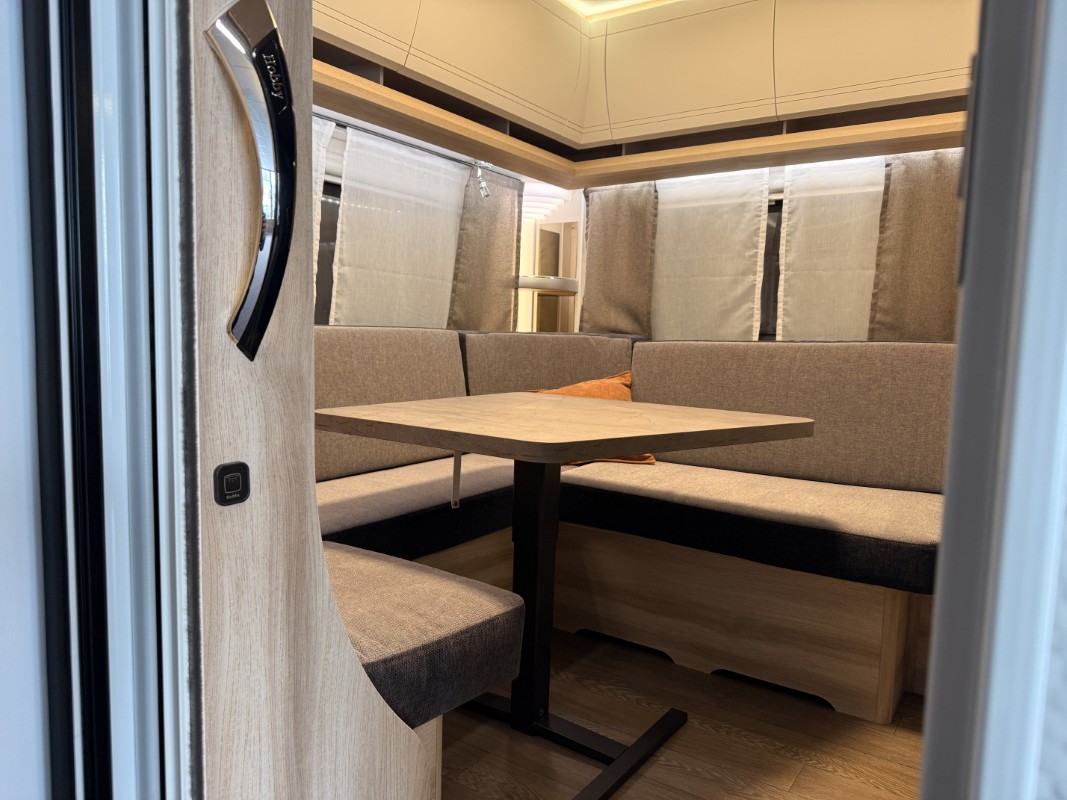 U heeft in deze comfortabel ingedeelde Hobby De Luxe de beschikking over genoeg slaap- en zitgelegenheid. Door het gebruik van GFK heeft deze Hobby caravan een hagelbestendig dak. U kunt al uw bagage makkelijk meenemen in deze caravan, het laadvermogen bedraagt namelijk 600 kilo. Via het serviceluik kunt u ook van buitenaf heel makkelijk bij uw spullen komen.