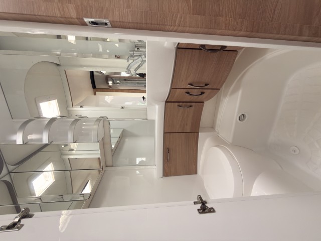 - Sanitair met cassettetoilet, vaste schoonwatertank en praktische wasruimte