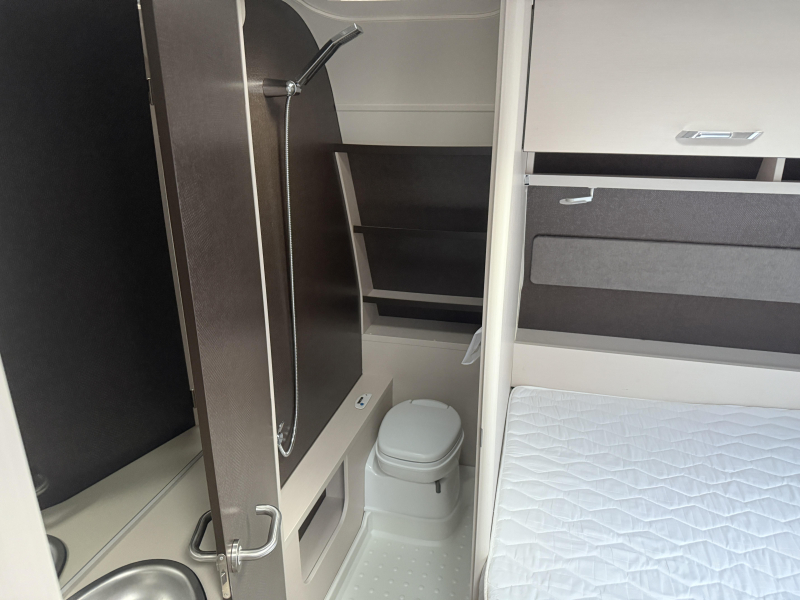 Sanitairhoek – Compleet met cassettetoilet, douche en een vaste schoonwatertank