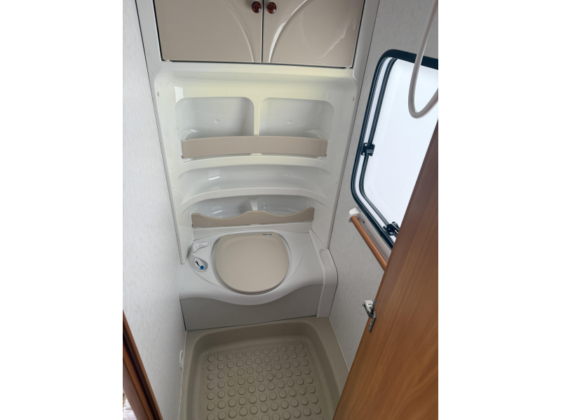 ✔ Sanitair in hoekopstelling – met cassettetoilet en vaste watertank