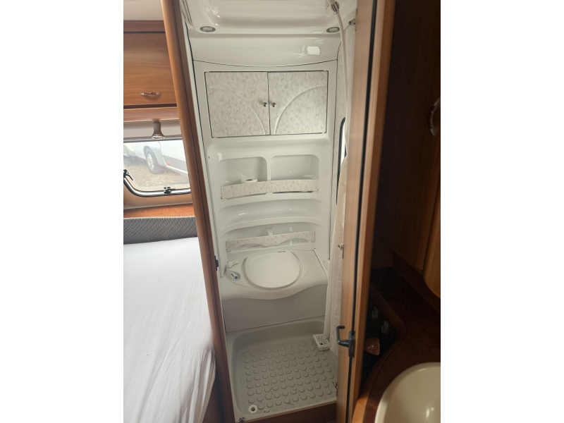Sanitair: Cassettetoilet, douche, vaste schoonwatertank
