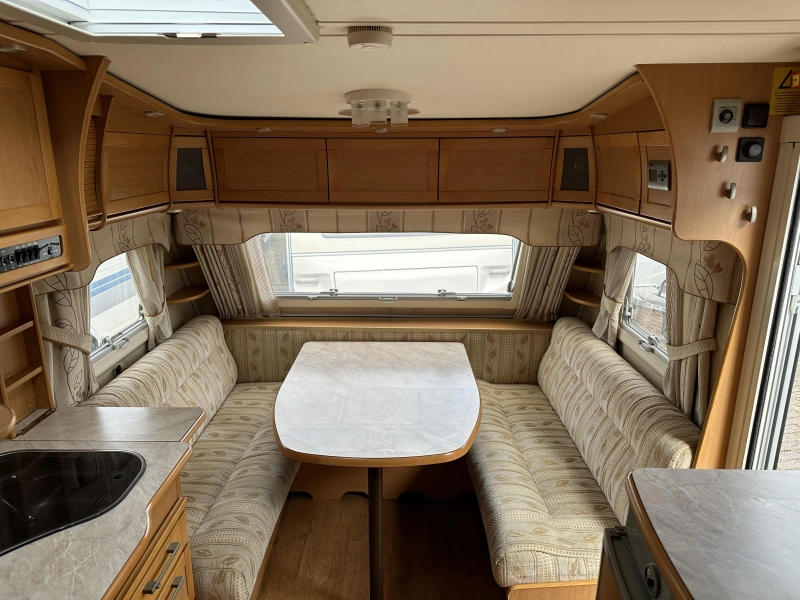 De Kabe Smaragd GLE staat bekend om zijn hoogwaardige isolatie, solide bouwkwaliteit en comfort in elk seizoen. Met twee aparte bedden, een ruime middenkeuken en complete verwarmingsconfiguratie is deze caravan perfect voor zowel zomer- als wintergebruik. Dankzij de mover, airco en uitgebreide technische uitrusting biedt deze Kabe een zeer hoog gebruikersgemak.