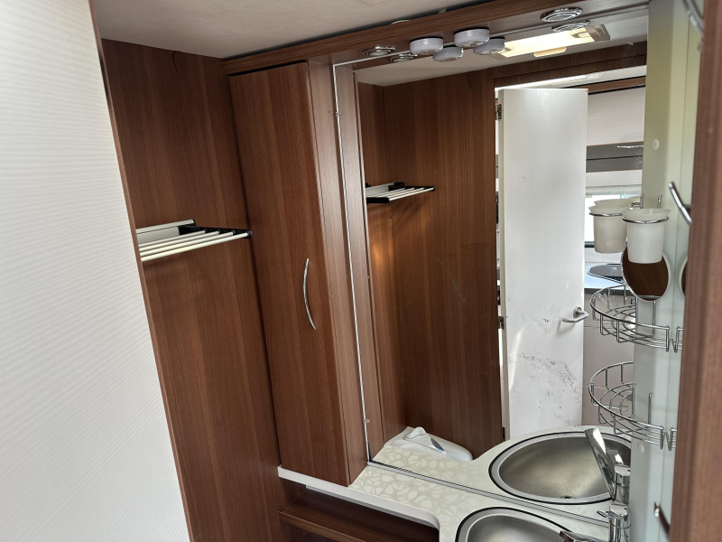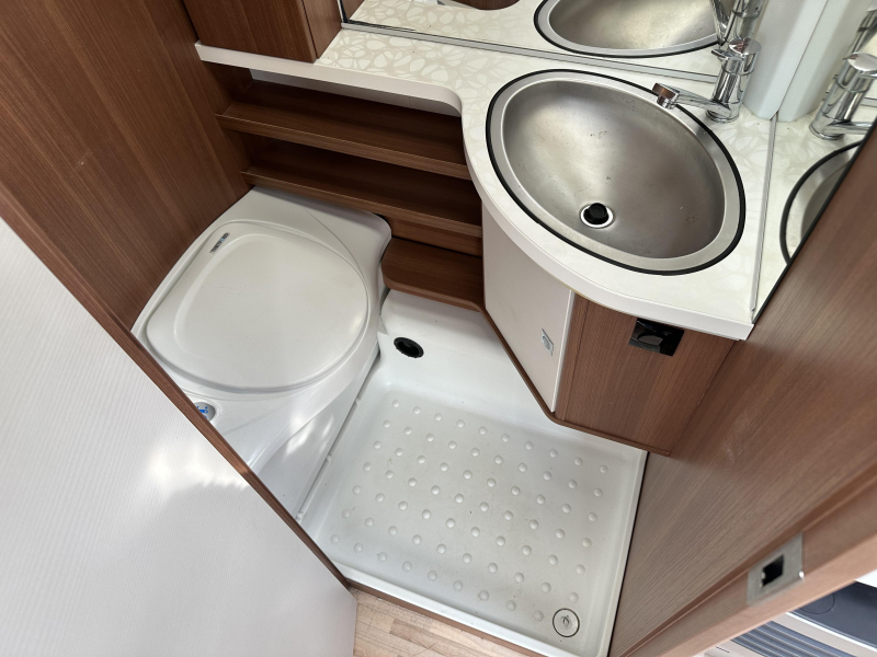 Sanitair: Midden-opgestelde badkamer voorzien van: Cassettetoilet, Wastafel en Schoonwatertank