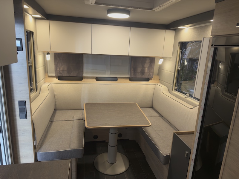 Deze caravan is uitgerust met een gezellige rondzit, die eenvoudig is om te bouwen tot een extra slaapplaats. Hierdoor is de Pantiga 490 E geschikt voor meerdere personen. De middenkeuken is voorzien van een inductiekookplaat, een ruime koelkast met vriesvak en een uitschuifbaar werkblad, zodat je onderweg net zo makkelijk kunt koken als thuis.