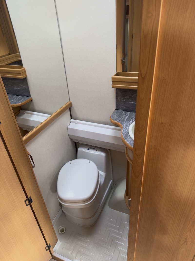 - Sanitair met cassettetoilet, vaste schoonwatertank en wasruimte