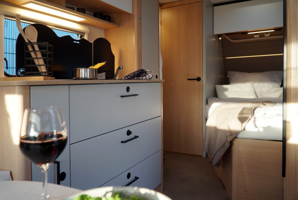 - Flexibele oplossingen zoals de uittrekbare wastafel garanderen gemak en altijd voldoende ruimte.