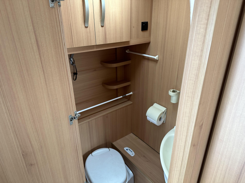 Sanitair Achterin met cassettetoilet en vaste schoonwatertank.