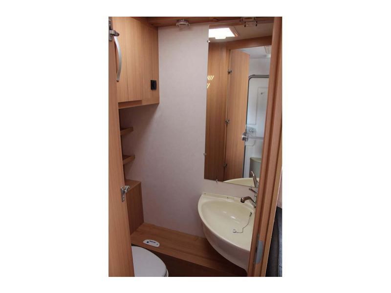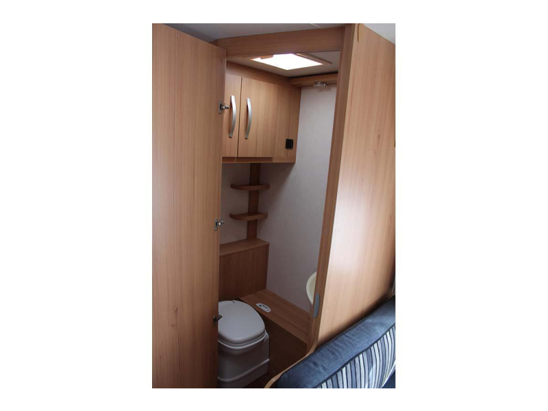 Sanitair: Hoek-opstelling met cassettetoilet en vaste schoonwatertank