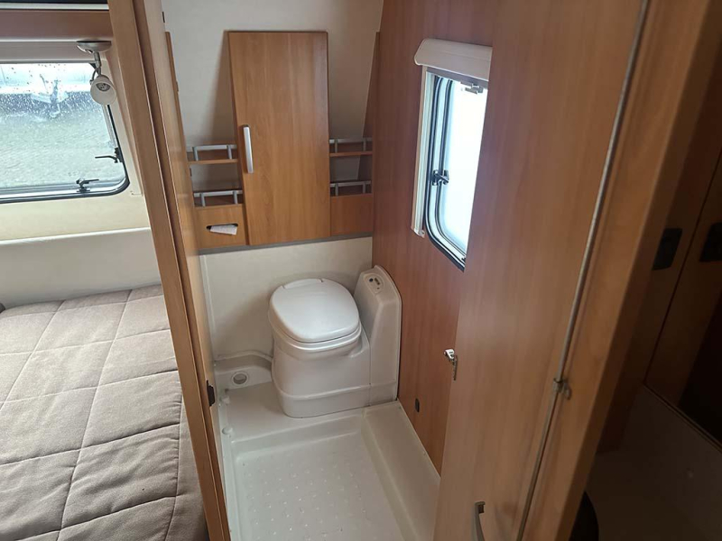 Sanitair hoek-opstelling: Met een cassettetoilet en wastafel, voor optimaal gebruiksgemak.